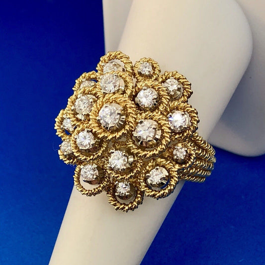Stunning 18K Yellow Gold Diamond Floral Cluster Empire Setting Statement Ring