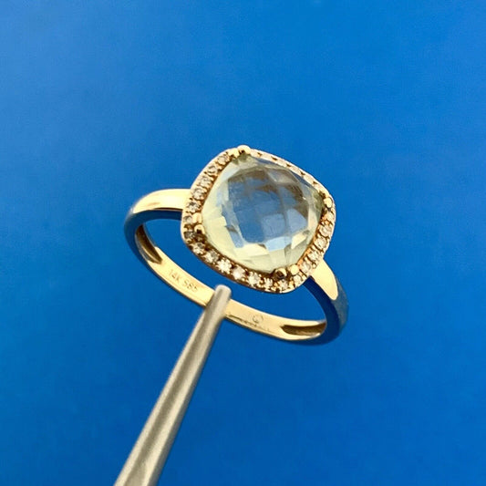 14k Yellow Gold Faceted Cushion Green Tourmaline Diamond Accent Size 6.25 Ring