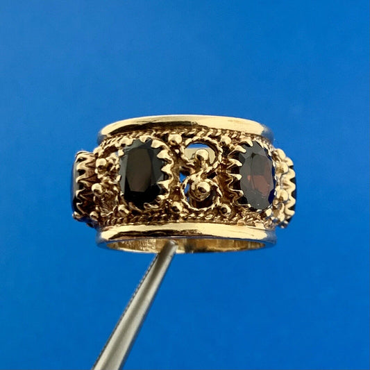 Gorgeous 14k Yellow Gold Oval Cut Red Garnet Openwork Statement Ring Size 7