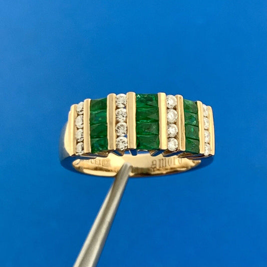 Retro Amoro 14K Yellow Gold Emerald Diamond May Anniversary Statement Band Ring