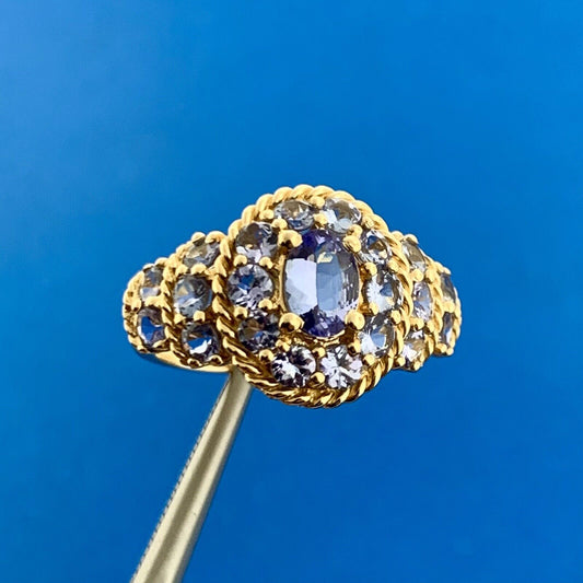 Designer 14K Yellow Gold Tanzanite Cluster December Anniversary Ring