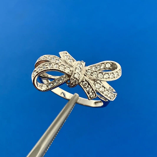 Designer Gorgeous 14k White Gold Round Sparkling CZ Tied Ribbon Ring Size 6