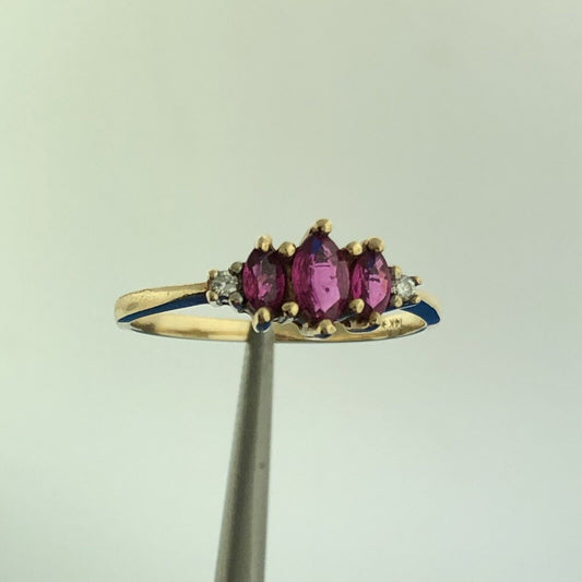Vintage 14K Yellow Gold Marquise Ruby Trio Diamond Accent July Anniversary Ring