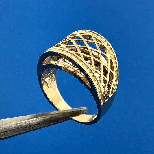 Designer 14K Yellow White Gold Diamond Cut Lattice Work Illusion Dome Ring