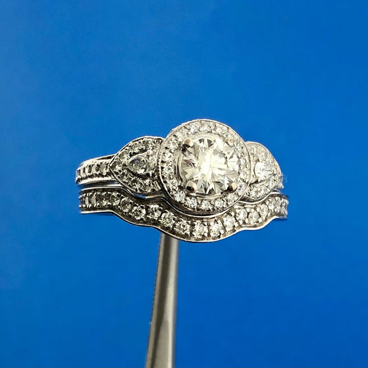 Designer 14K White Gold Solitaire Halo Accent Diamond 2 Ring Bridal Set