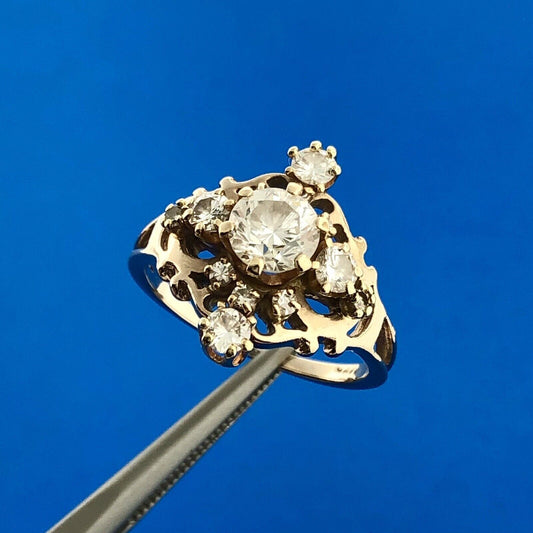 Gorgeous 14k White Gold Round Cut Diamond Blooming Tower Cluster Ring Size 7.5