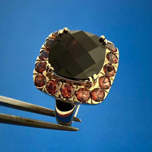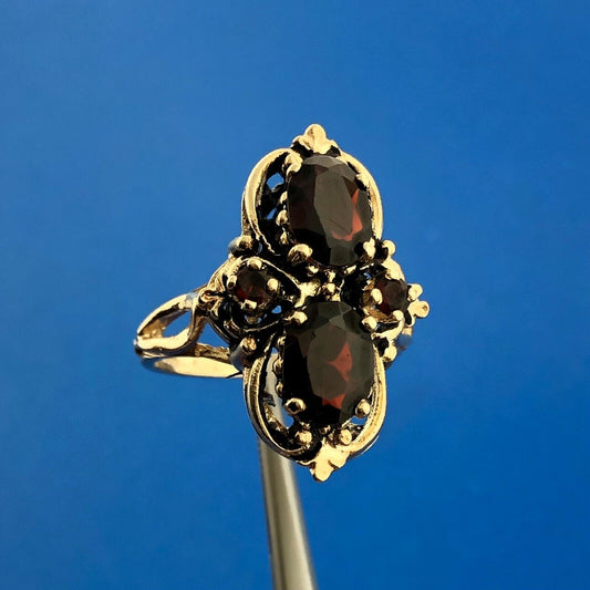 Vintage 14k Yellow Gold Oval Round Cut Red Garnet Statement Ring Size 7.5