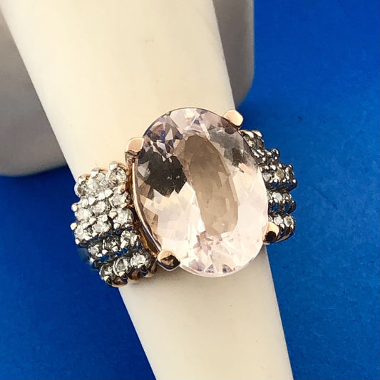 Designer 14K Rose Gold Morganite Solitaire Diamond Accented Statement Ring