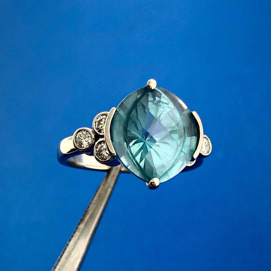 Stunning 14K White Gold Blue Topaz Diamond Accented December Anniversary Ring