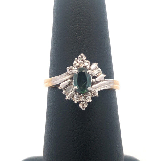 Gorgeous 14k Yellow Gold Round Cut Emerald Diamond Regal Woman's Ring Size 6.75