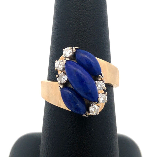 Gorgeous 14k Yellow Gold Cabochon Lapis Lazuli Diamond Bypass Ring Size 7.25