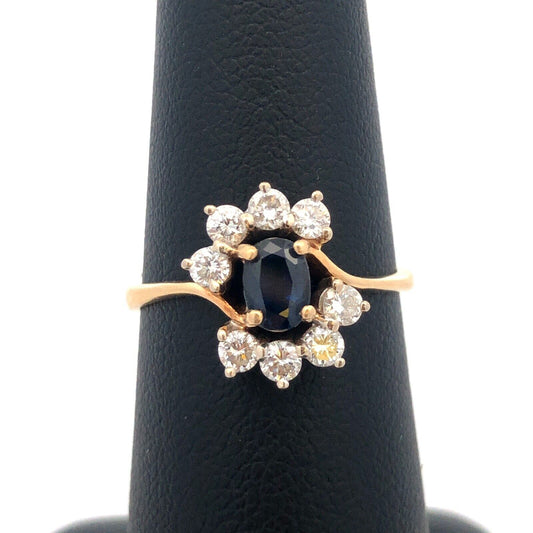 Gorgeous 14k Yellow Gold Oval Cut Sapphire Diamond Floral Cluster Ring Size 6.5