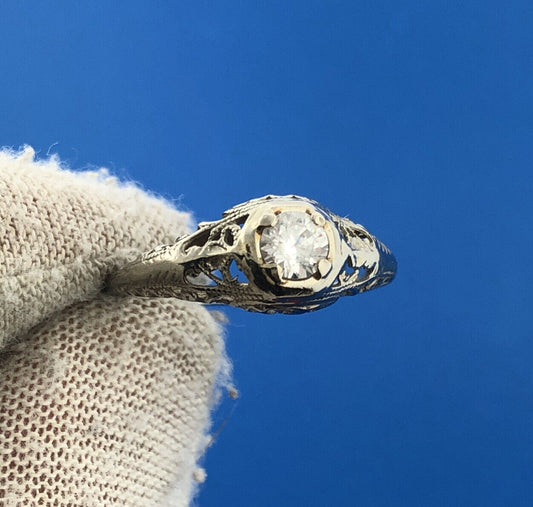 Gorgeous 14k White Gold Sparkling CZ Openwork Filigree Ring Size 5.75