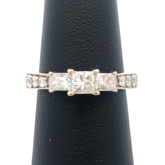 Gorgeous 14k White Gold IKS Triple Princess Diamond Engagement Ring Size 6.25