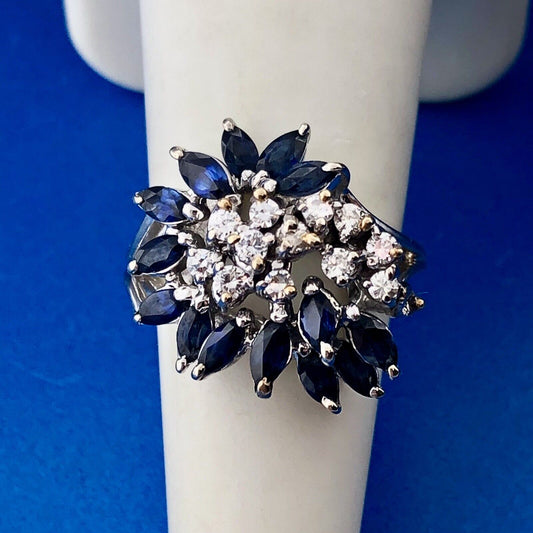 Designer 14K White Gold Sapphire Diamond Starfire Waterfall Anniversary Ring