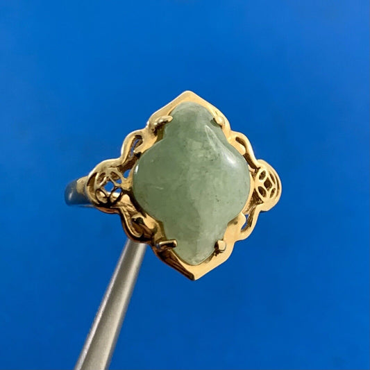 Vintage Designer 14K Yellow Gold Jade Cabochon Statement Cocktail Ring