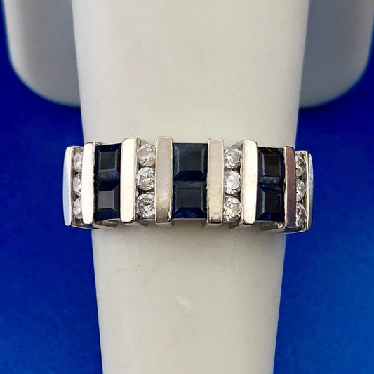 Retro Designer 14K White Gold Diamond Sapphire Channel Set Tapered Band Ring