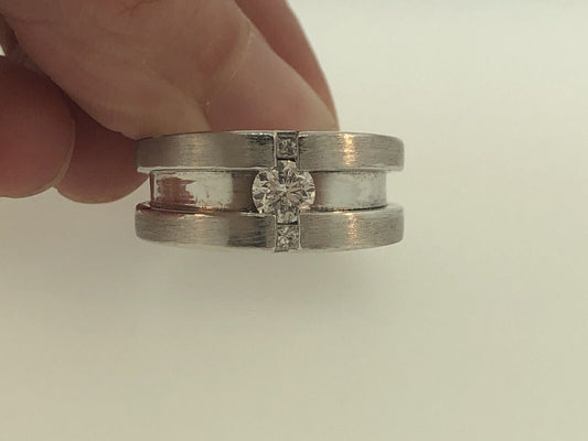 14K White Gold Diamond Burnished/Polished Unisex Modernist Tension Wedding Ring