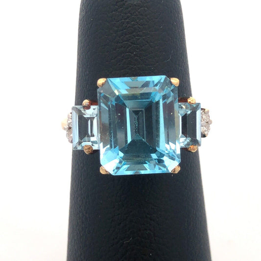 14K Yellow Gold Blue Topaz Diamond December Anniversary Cocktail Statement Ring