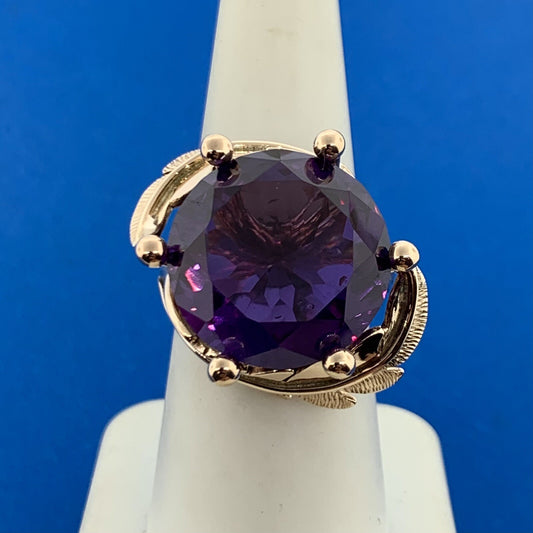 14K Yellow Gold Purple Sapphire Solitaire Statement Cocktail Size 7.75 Ring