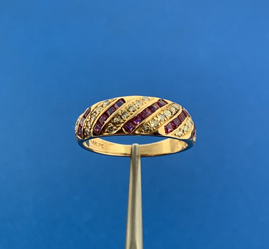 Stunning 14K Yellow Gold Diamond Ruby Duo Engagement Anniversary Cocktail Ring