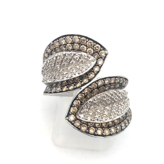 14K White Gold Chocolate Vanilla Diamond Bypass Anniversary Cocktail Ring