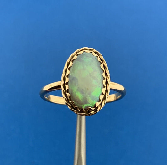 Vintage 14K Yellow Gold Oval Opal Cabochon Solitaire October Anniversary Ring