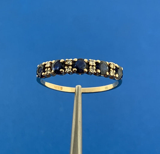 Designer 14K Yellow Gold Sapphire Diamond September Anniversary Band Ring