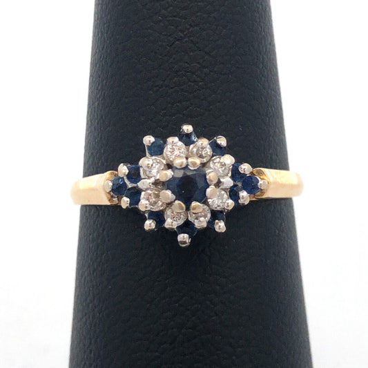 Vintage 14K Yellow White Gold Sapphire Diamond Star Flower Cluster Cocktail Ring