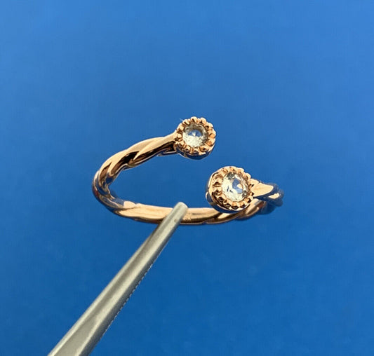 Retro Designer 14K Yellow Gold Blue Topaz Ribbed Twist Modernist Bypass Ring