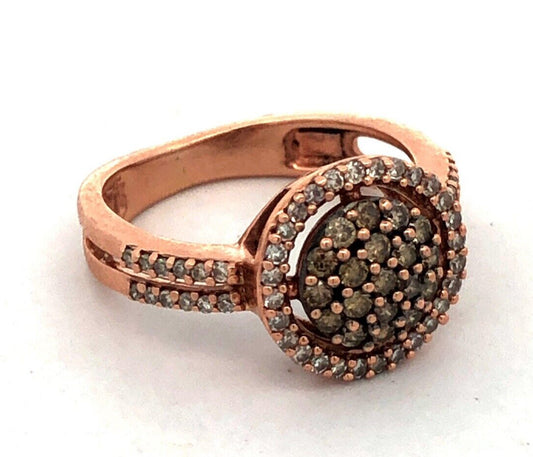 Estate 14K Rose Gold Round Chocolate Diamond Pave Cluster Halo Cocktail Ring