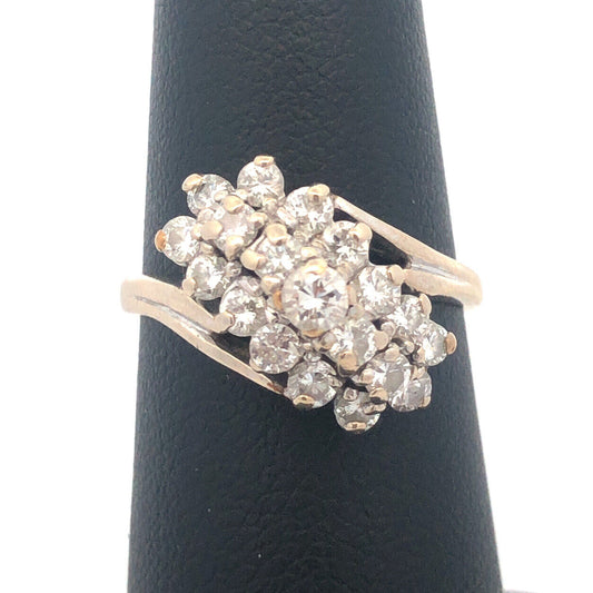 Estate 14K Yellow Gold Diamond Waterfall Cluster Statement Cocktail Ring