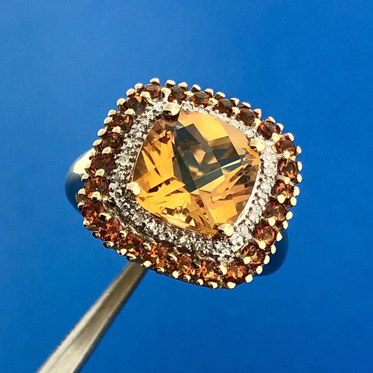 Designer 14K Yellow Gold Citrine Diamond Citrine Halo Statement Anniversary Ring