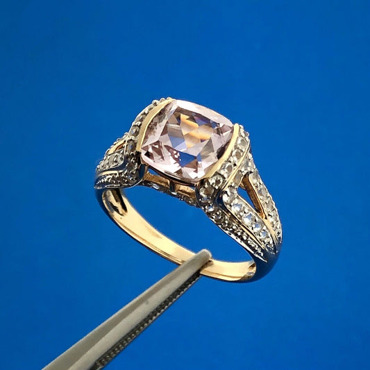 Designer MEDA 14K Yellow White Gold Morganite Diamond Accented Statement Ring