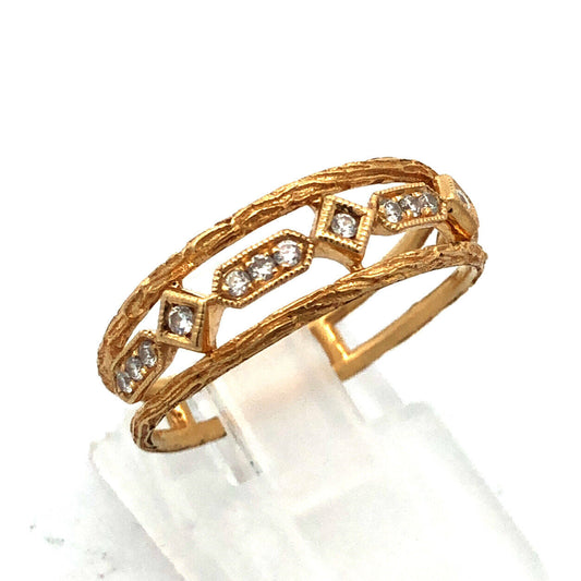 14K Yellow Gold Designer AND Italy Round Cubic Zirconia Modernist V Band Ring