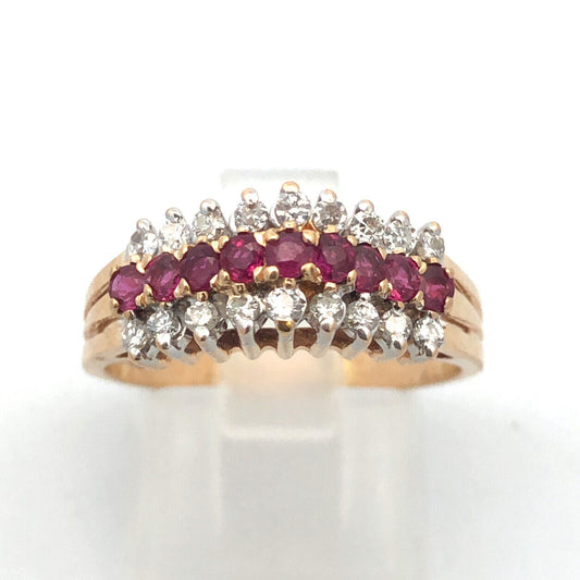 Designer 14K Yellow Gold Ruby Diamond Accented Empire Style Cocktail Ring