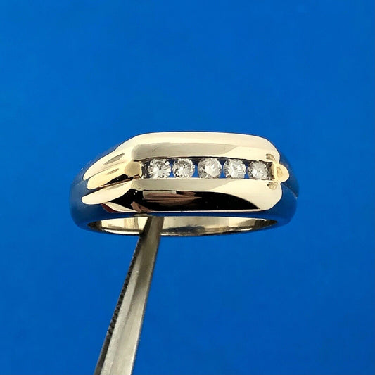 Unisex 14K White Yellow Gold Diamond Bar Dome Wedding Anniversary Band Ring