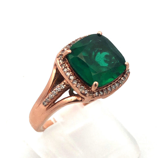 14K Rose Gold Princess Cut Emerald Pave Diamond Halo Cocktail Ring