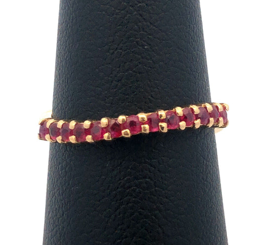 Designer 14K Yellow Gold Ruby Stackable Wave Band Ring