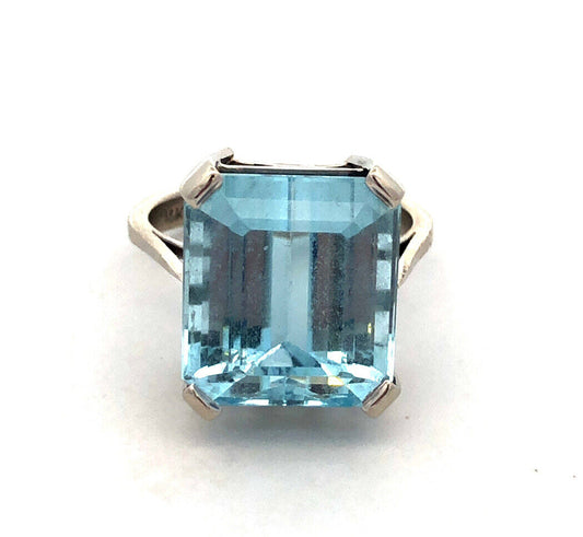 14K White Gold Large Emerald Cut Blue Topaz Solitaire Statement Ring