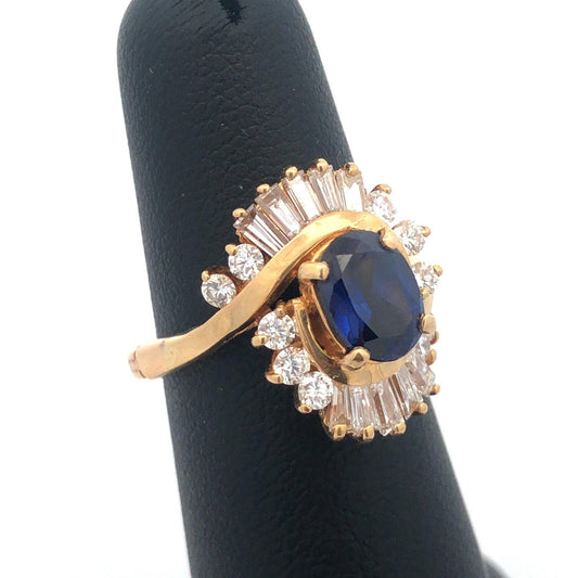 Designer 14K Yellow Gold Oval Blue Sapphire Emerald Ruby Diamond Accented Ring
