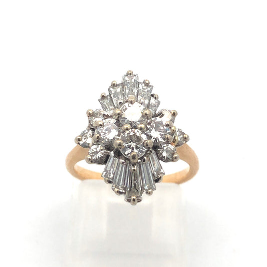 Estate 14K Yellow Gold Diamond Cluster Waterfall Statement Cocktail Ring