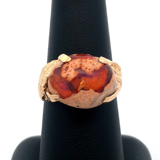 Designer Vintage 14K Yellow Gold Oval Mexican Opal Cabochon Statement Ring