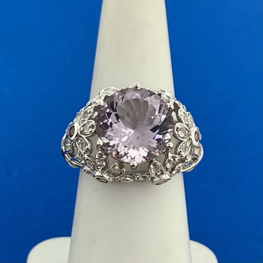 Designer 14K White Gold Purple Amethyst White Topaz Accents Statement Ring