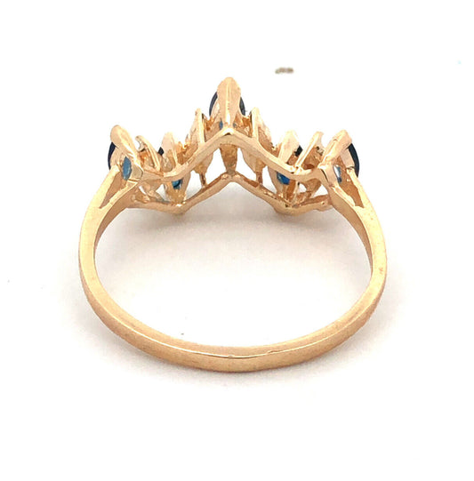 14K Yellow Gold Estate Oval Blue Sapphire Size 6.75 Stackable Band Ring