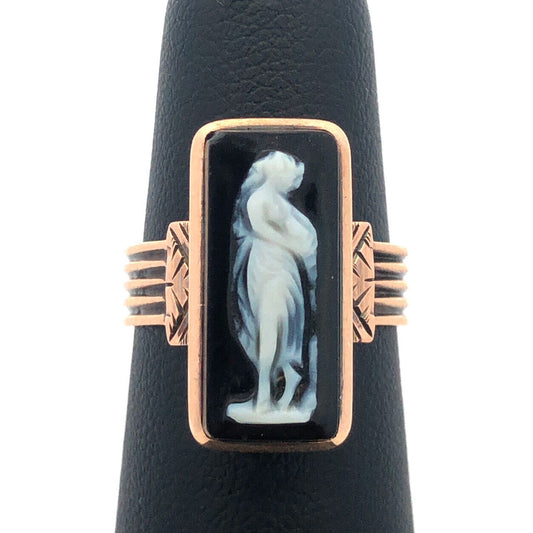 Vintage Estate 14k Yellow Gold Rectangle Onyx Cameo Statement Ring Size 5.75