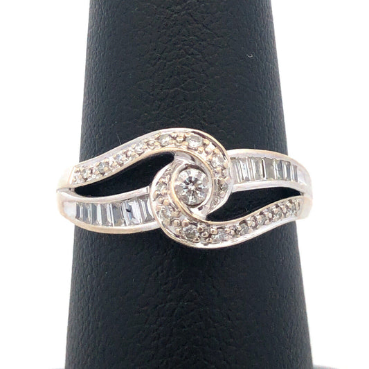Gorgeous 14k White Gold Baguette Round Cut Diamond Intertwined Ring Size 7