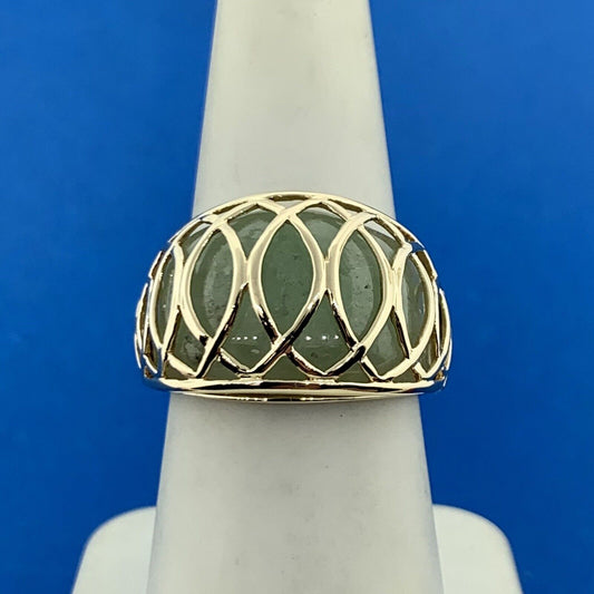 Designer 14K Yellow Gold Curved Jade Cabochon Modernist Dome Ring