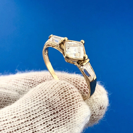 Gorgeous 14k Yellow Gold Princess Baguette Tapered Cut Sparkling CZ Ring Size 7