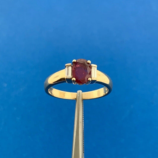 Designer 14K Yellow Gold Oval Ruby Diamond Accent July Birthday Anniversary Ring